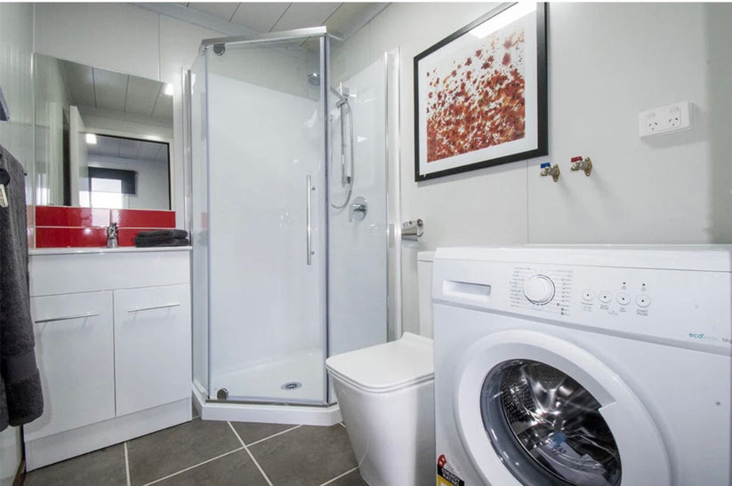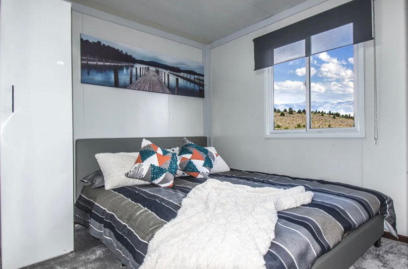Sistema de chasis: estructura de acero + tablero de fibra de cemento de 18 mm de espesor + piso laminado de PVC