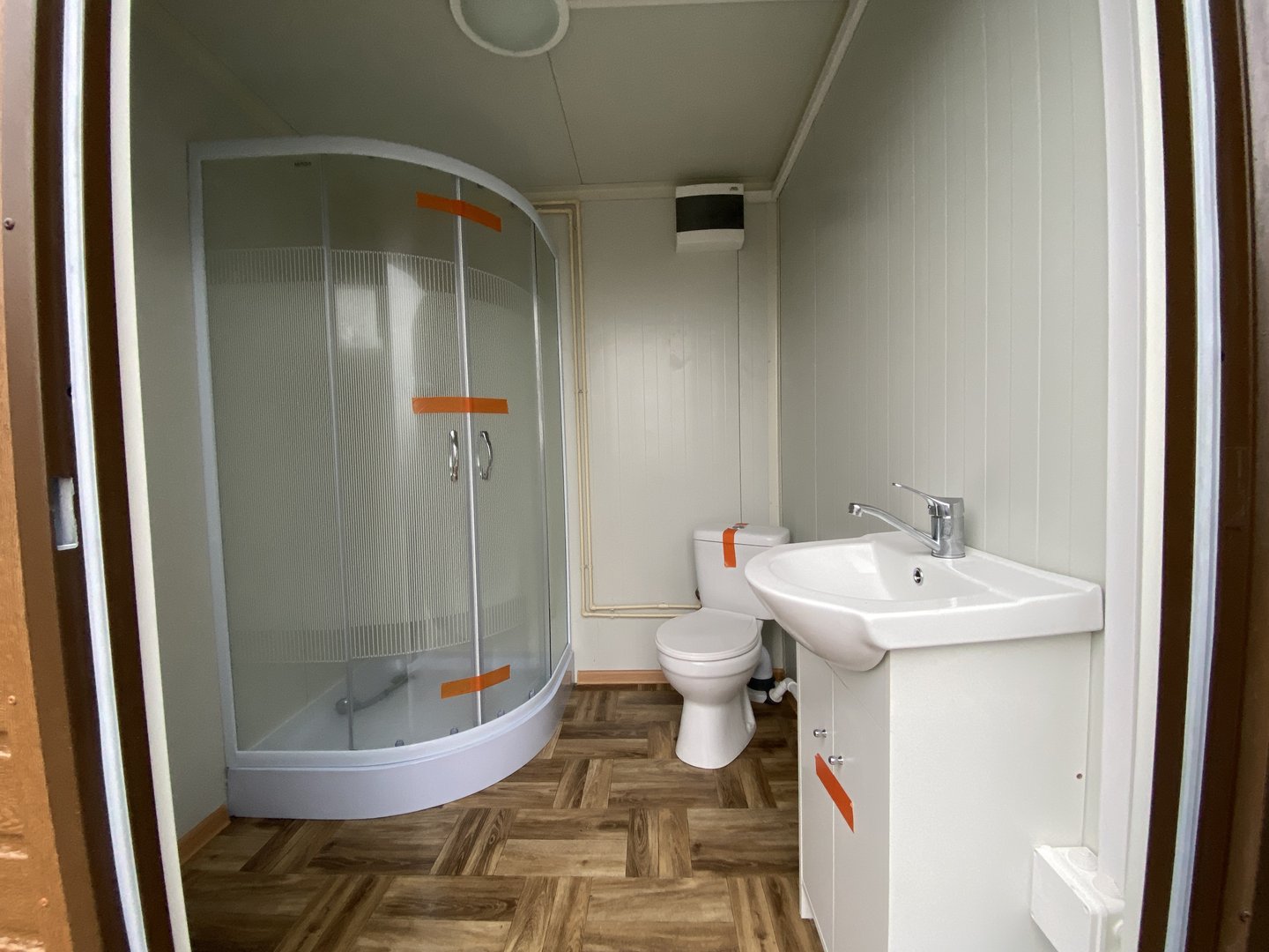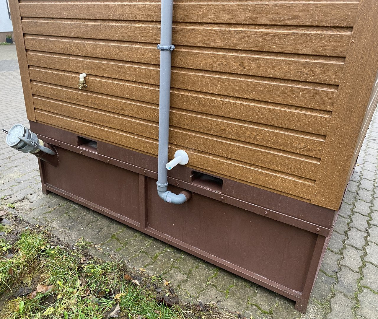 Contenedor sanitario en diseño de madera con depósito de residuos 2,00m x 2,00m x 3,00m