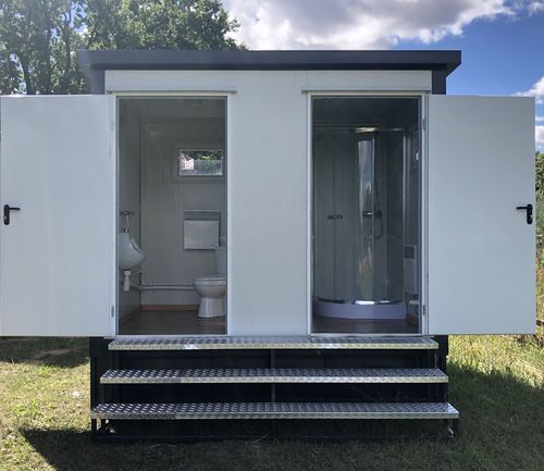 WC cabina doble 3x2 metros con tanque de aguas residuales