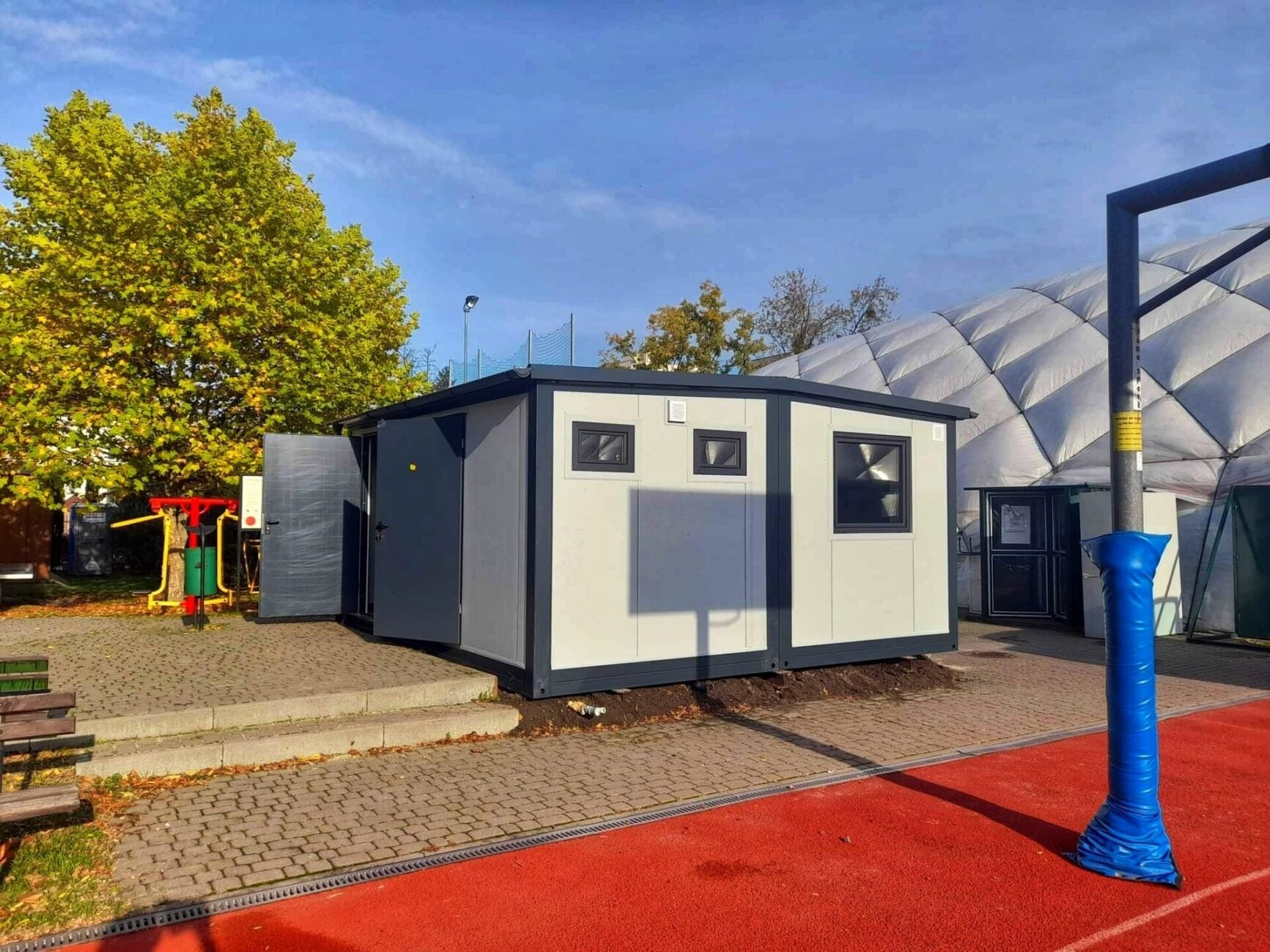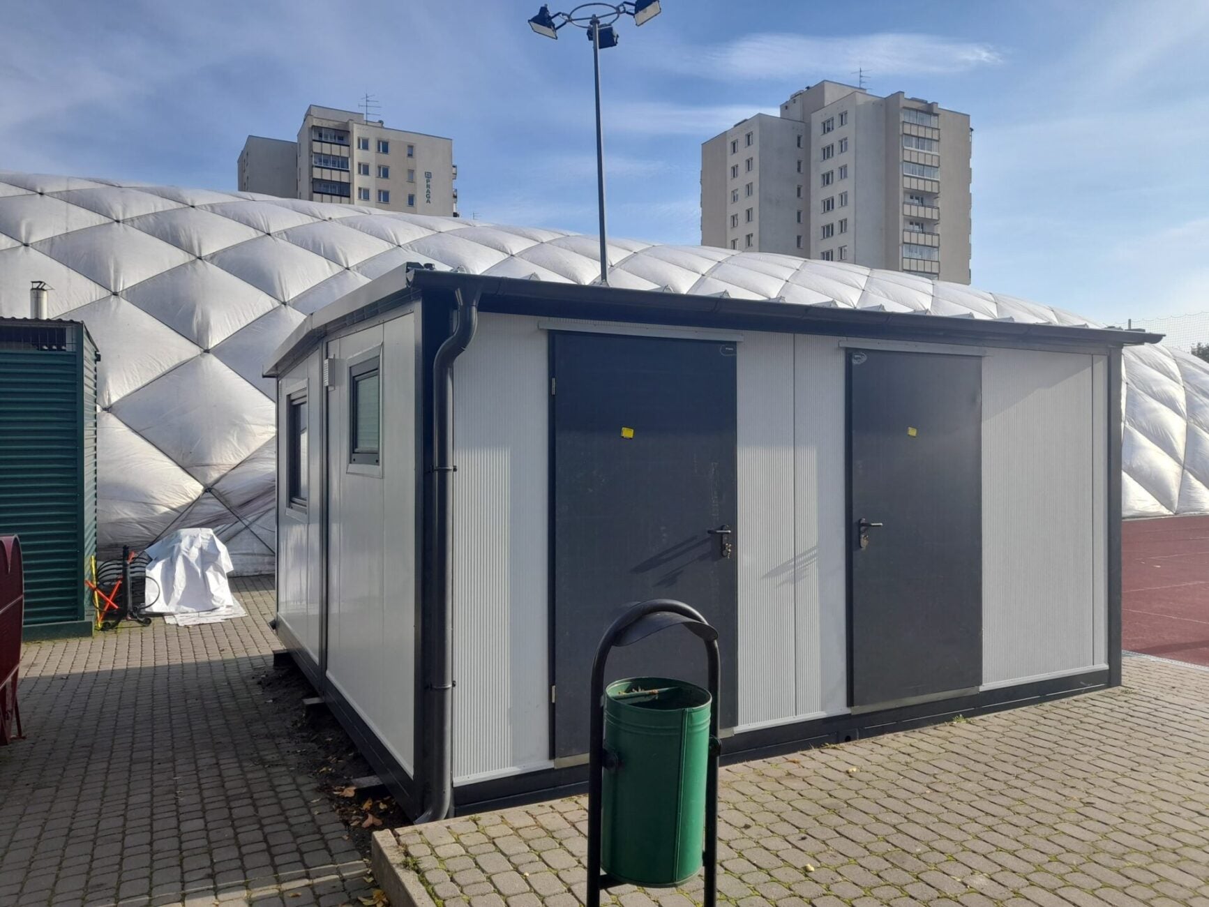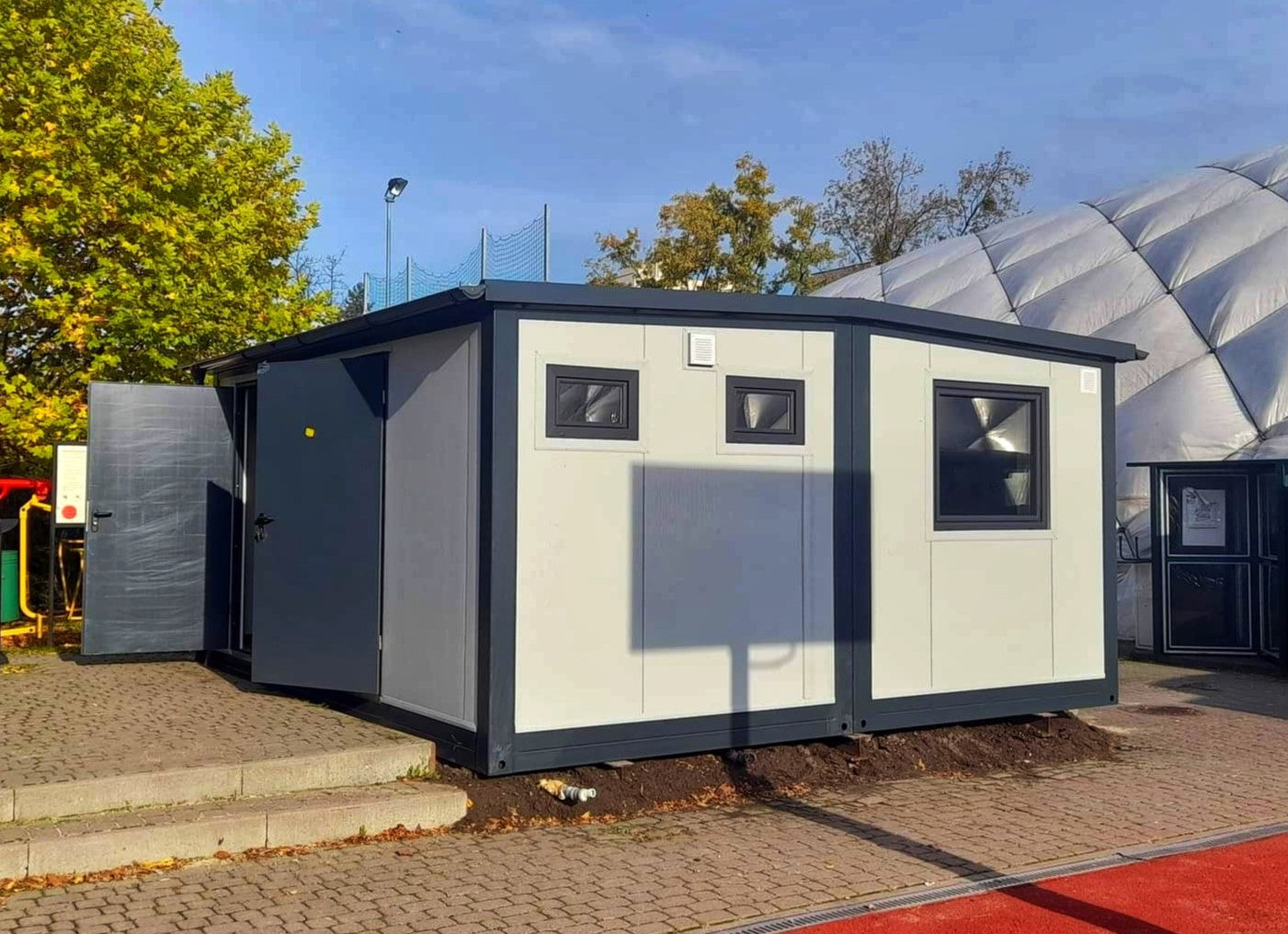 La estructura del contenedor sanitario fue realizada de acuerdo con la norma PN EN 1090-1+A1:2012 y clase EXC2. Color del marco y los frentes del contenedor: RAL 7016.