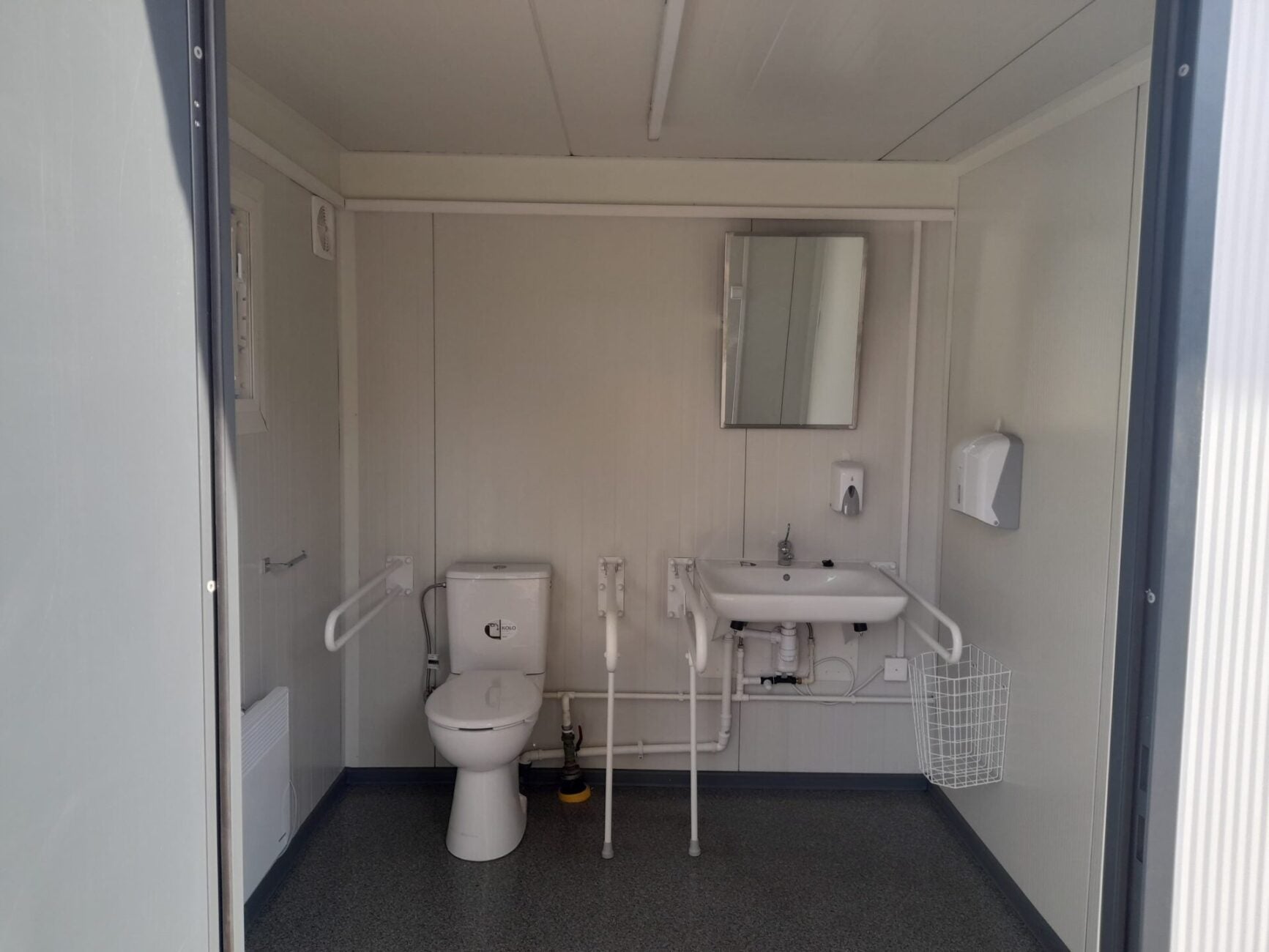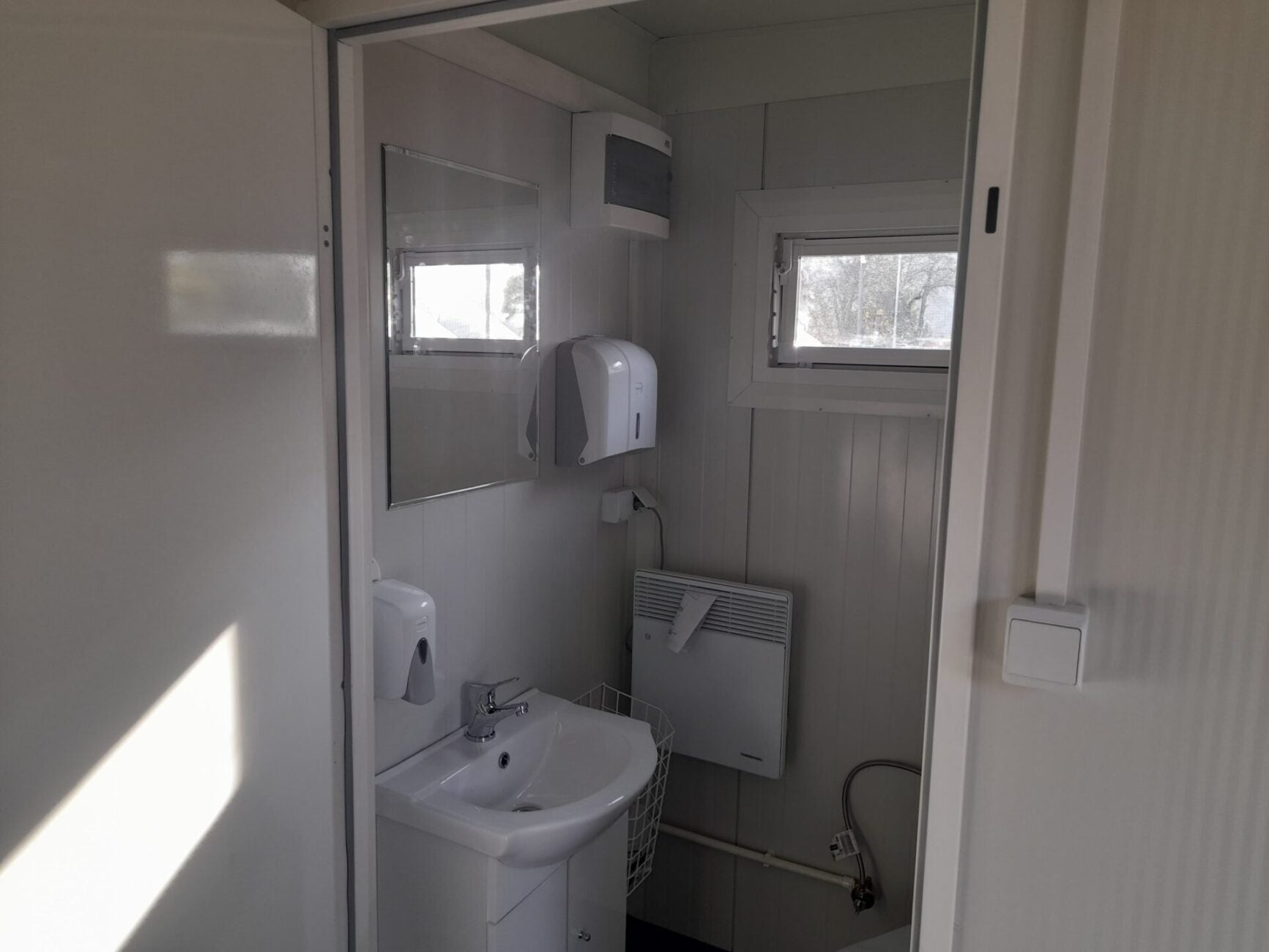 El contenedor sanitario dispone de una instalación eléctrica y de calefacción completa.